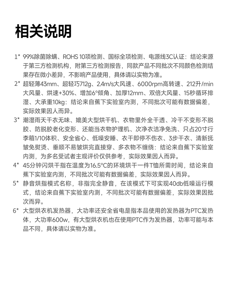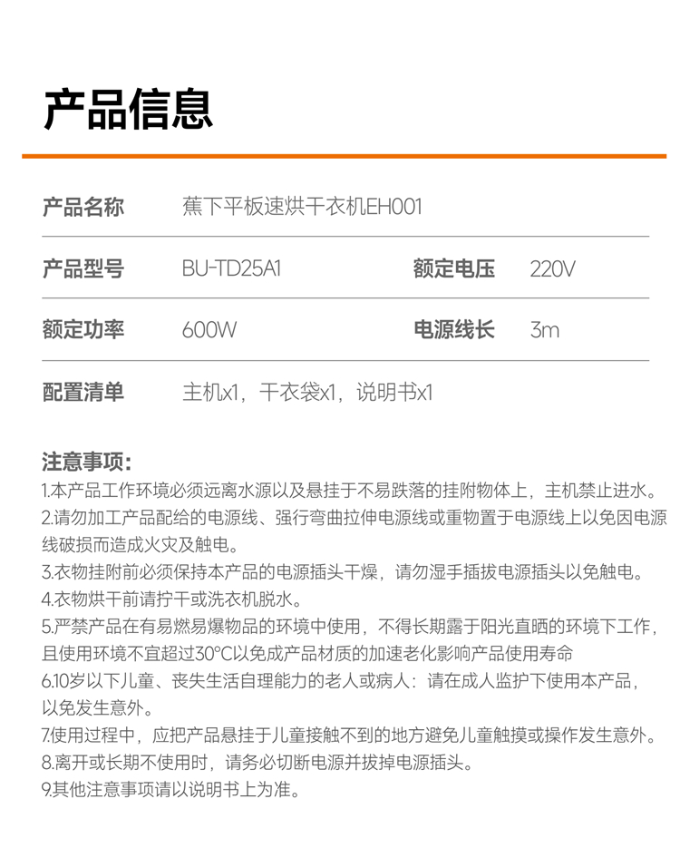 商品名称:蕉下平板衣物速烘干衣机