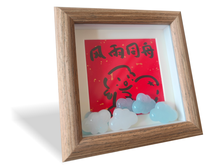 精选洒金卡纸手绘萌趣“云小间”,搭配“风调雨顺”“风和日丽”等吉祥气象成语。 立体云朵颗粒悬浮装点,营造灵动氛围,匠心打造兼具艺术与寓意的桌面气象小景。